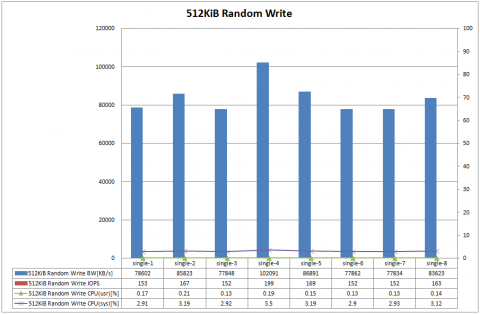 512KiB Random Writeは同じくらい。FreeBSDの方が若干安定感に欠けるきらいはある。